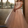 Shown here in soft and sweet Powder Pink/Blush, this gown is also available in Latte/Ivory, White, Champagne, Ivory, Blush, Rose/Silver.