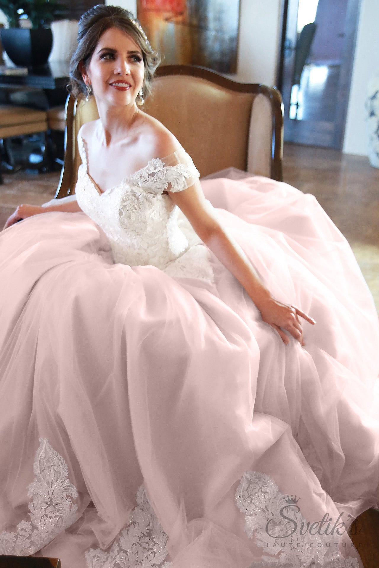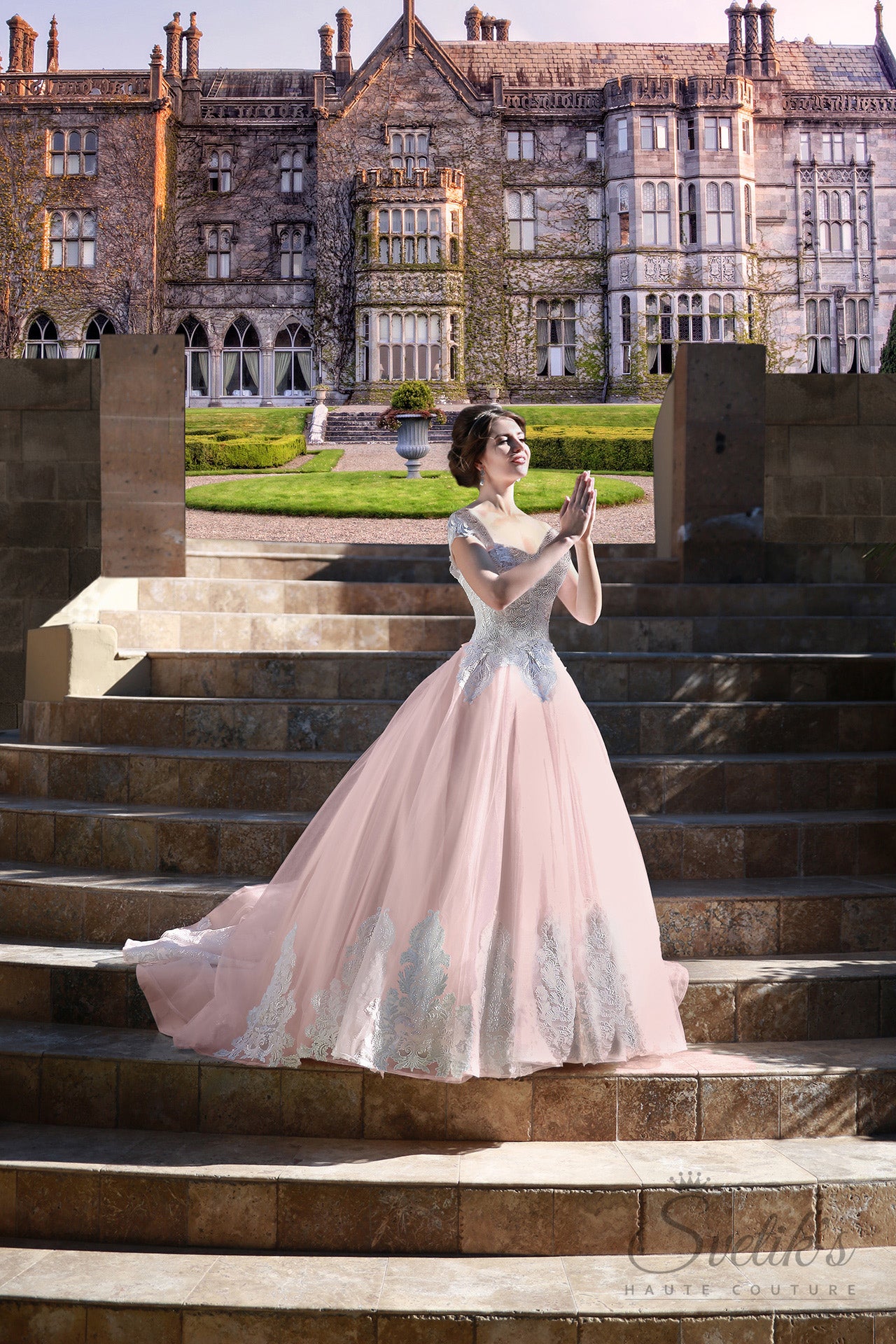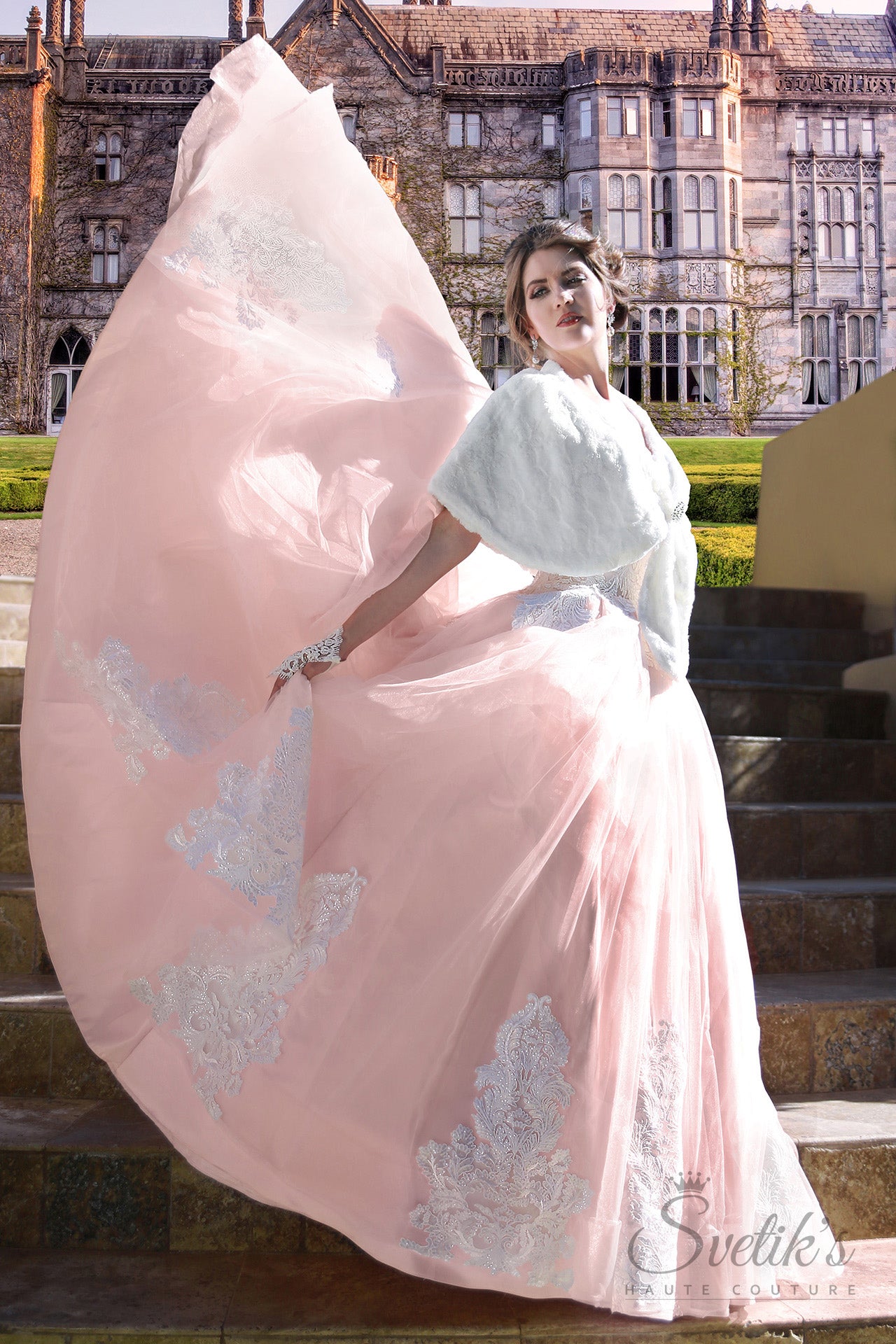 Stop the show with this magnificent French satin and organza ball gown in Crystal Powder Pink.