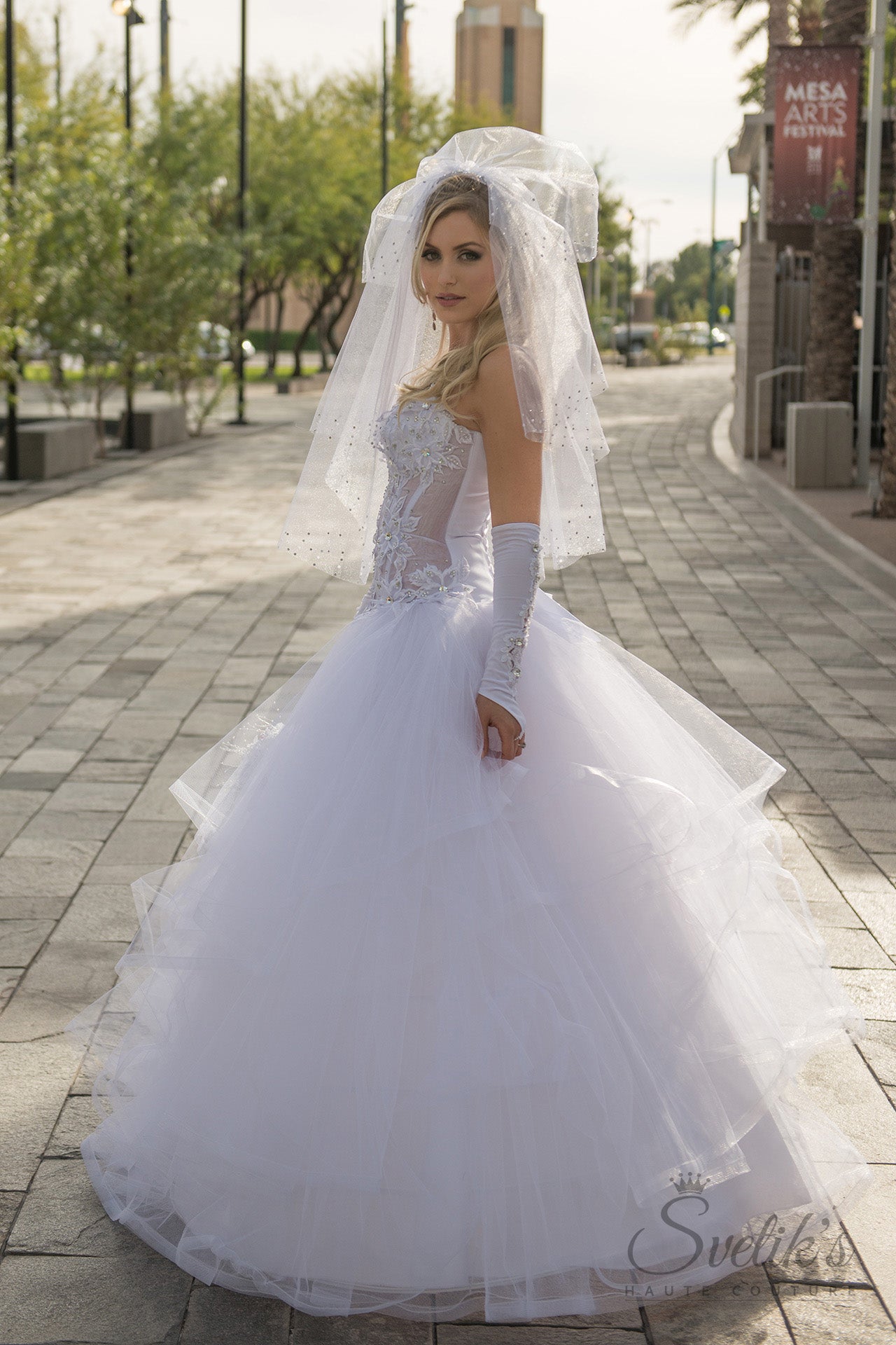Designed for the bride who aims to steal the show, this daring Ballerina ball gown definitely gets top billing for a special evening.