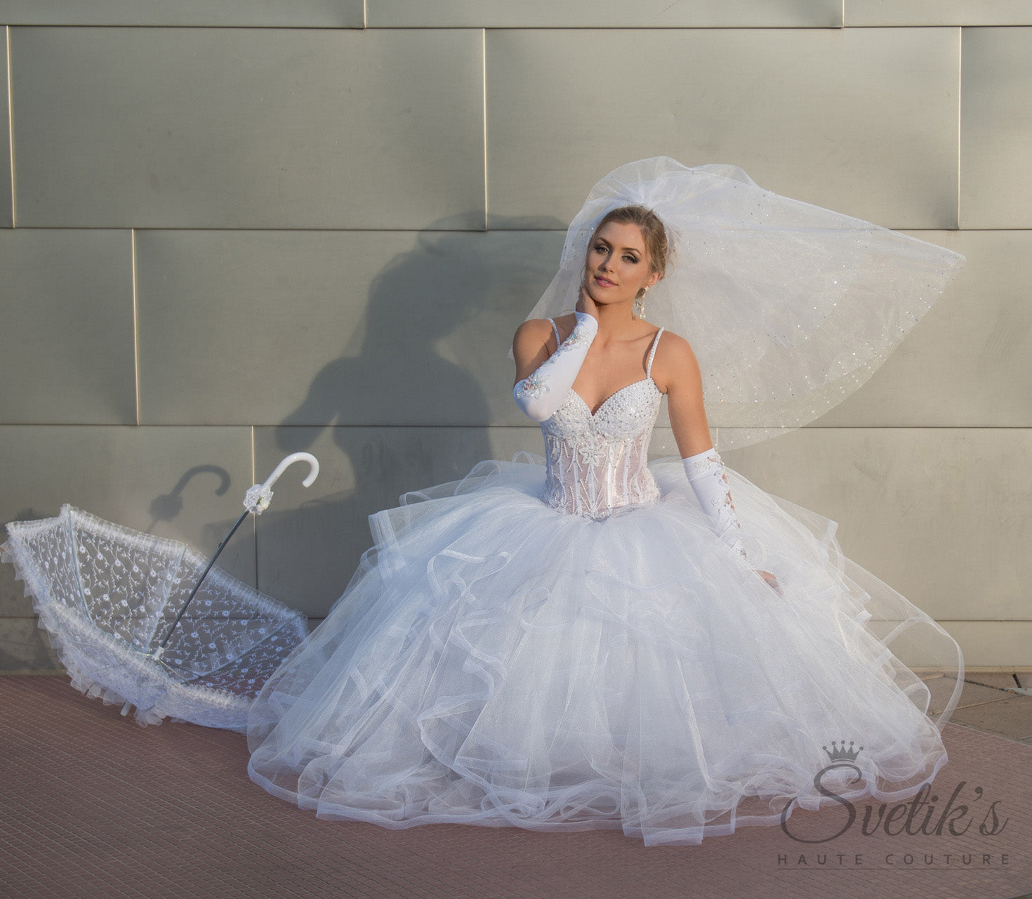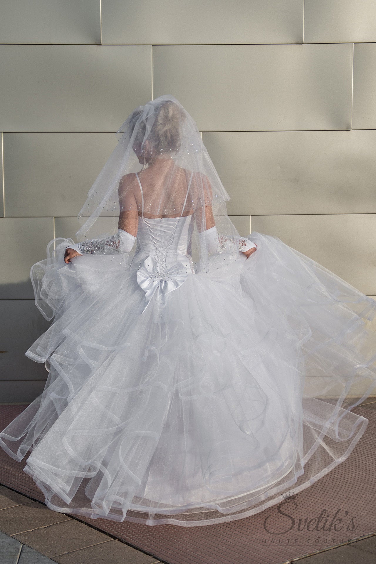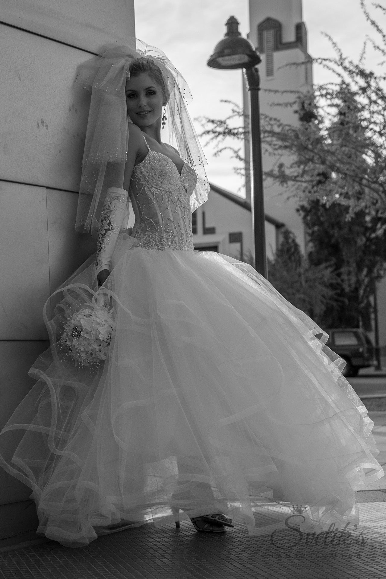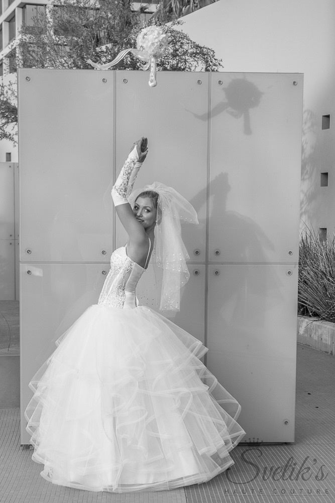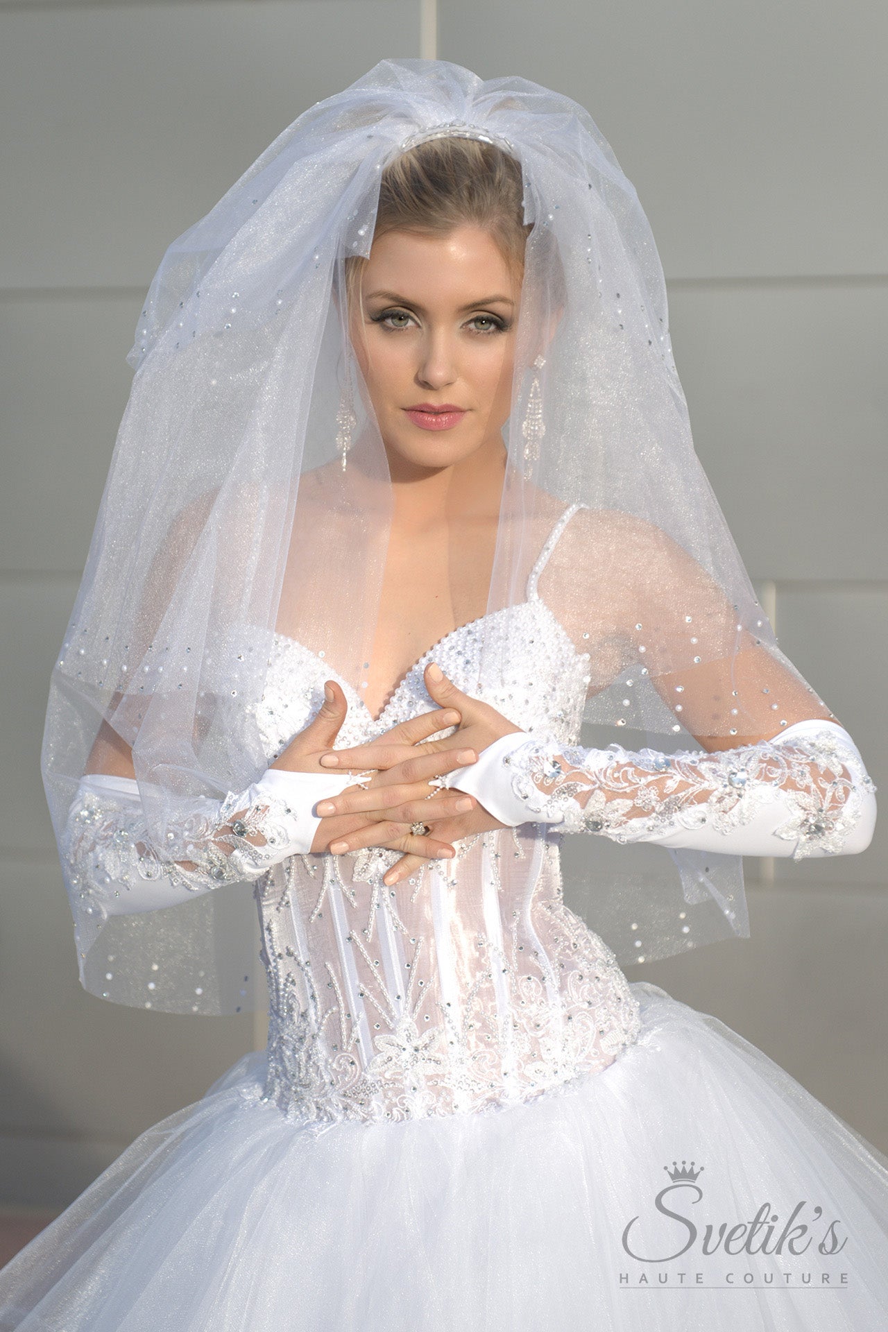 Clean lines and sparkling embellishment, lightweight layers and romantic details – this gorgeous creation by Svetik’s Haute Couture has it all!