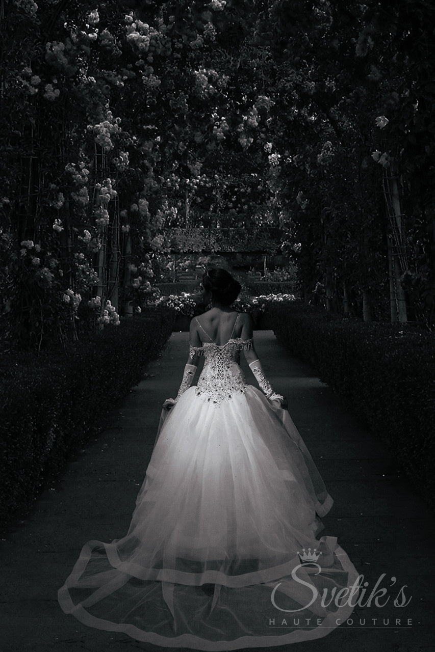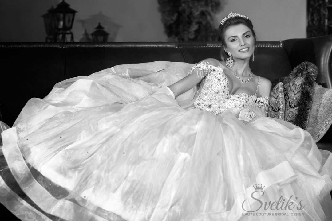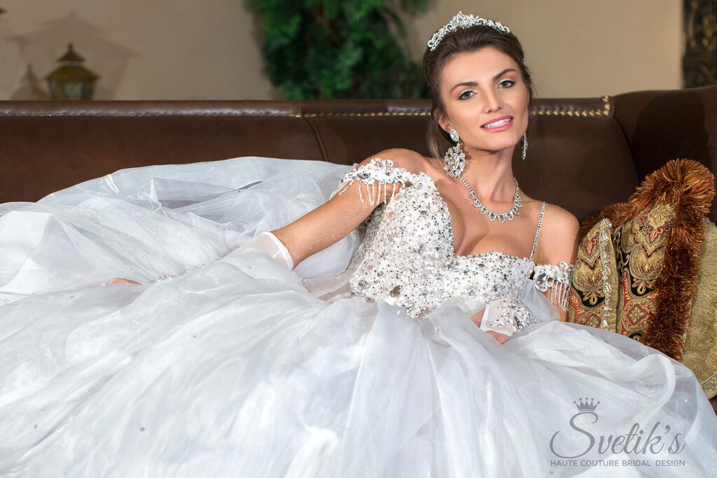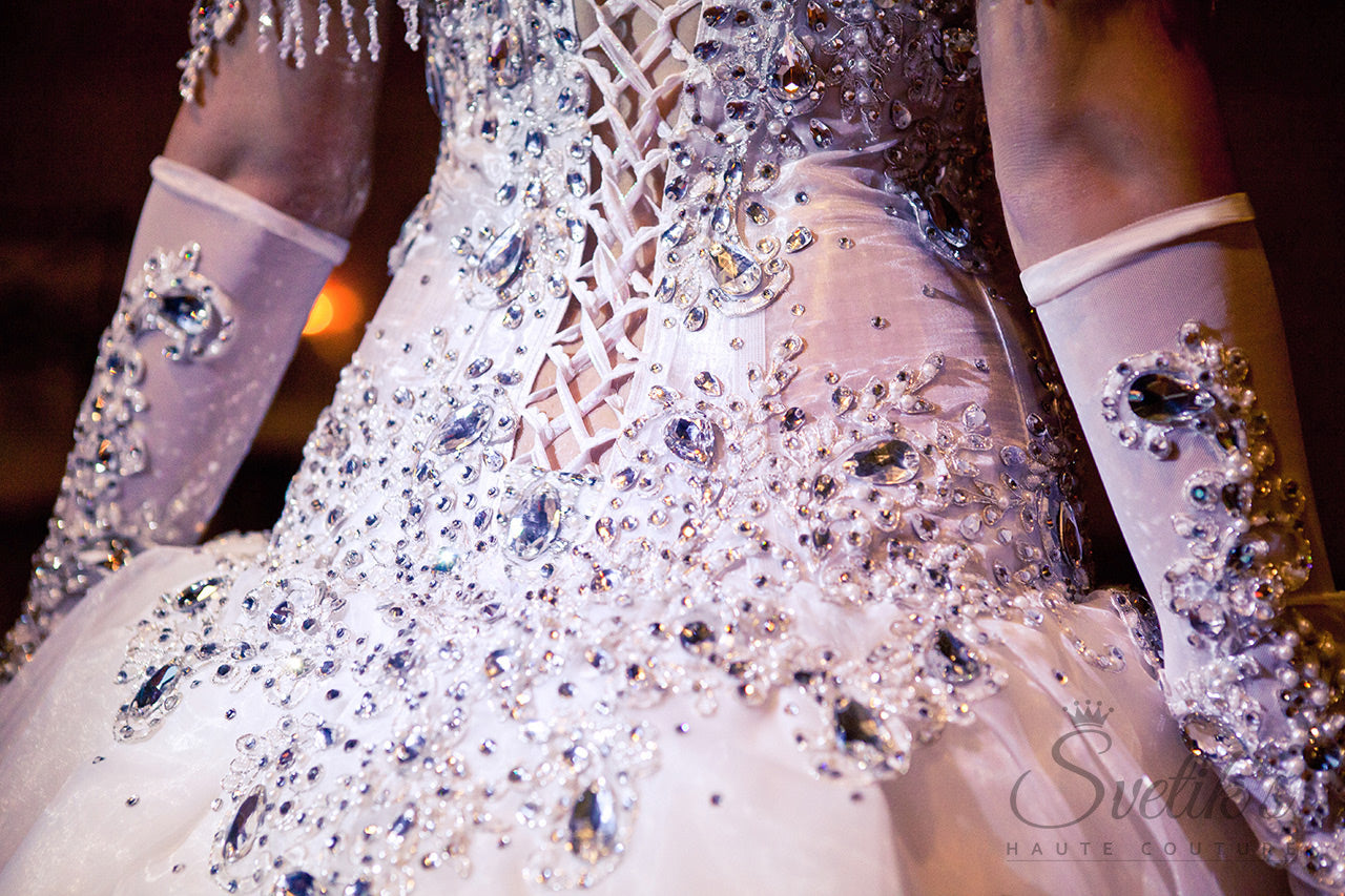 A clear statement of sophisticated luxury, Svetik’s Haute Couture lets the White Swan ball gown speak for itself as an example of high wedding fashion.