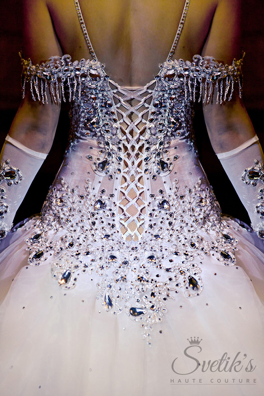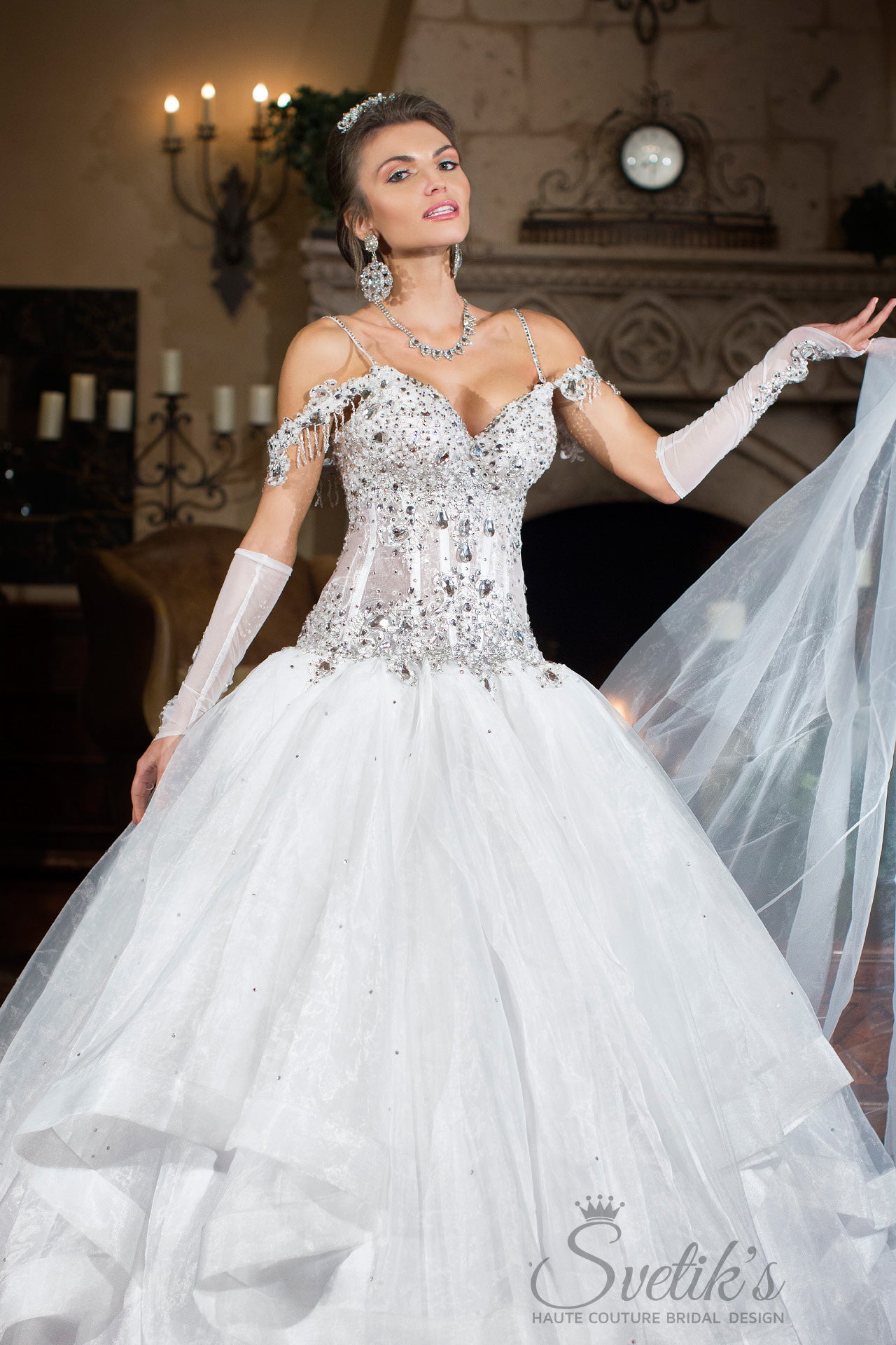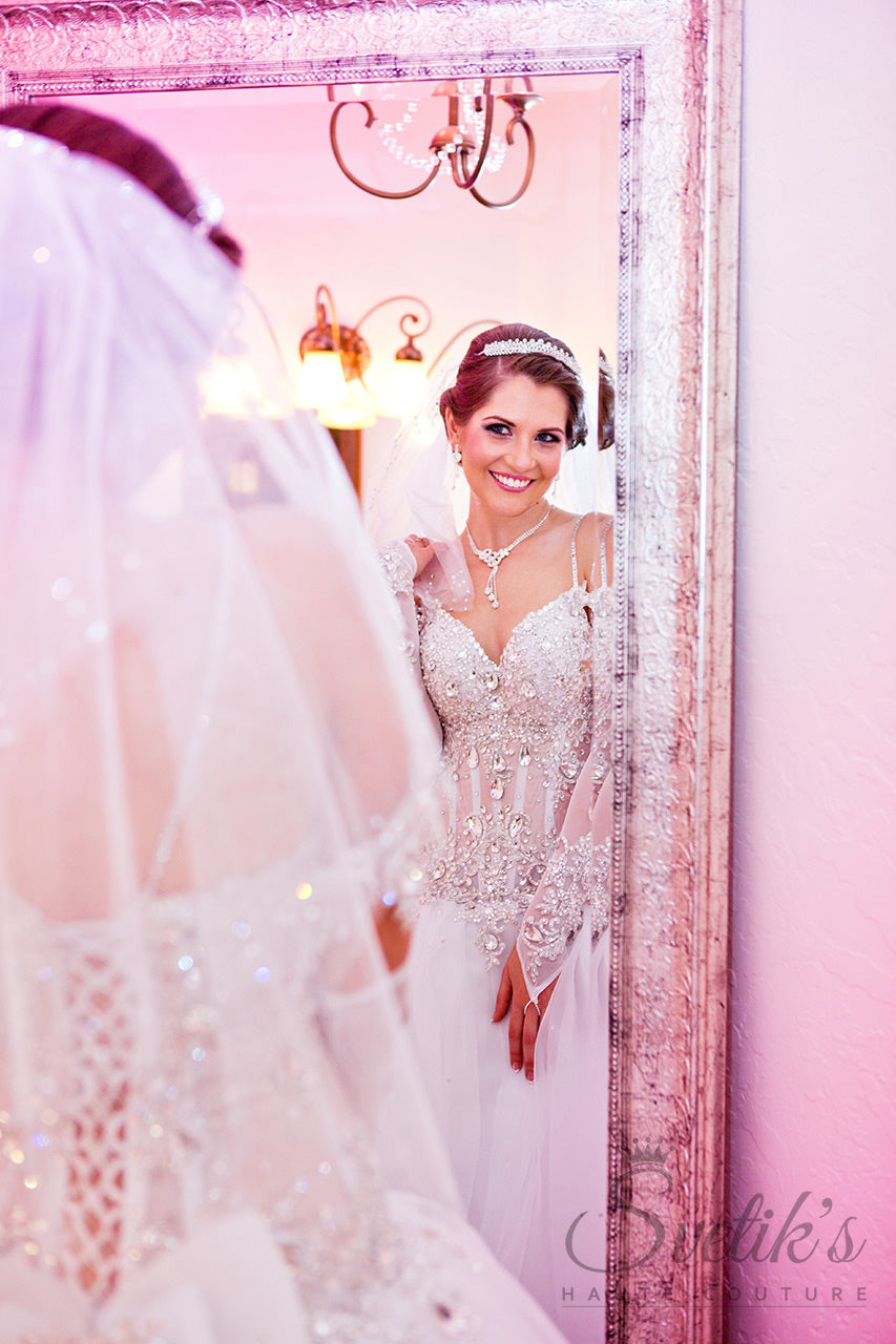 A clear statement of sophisticated luxury, Svetik’s Haute Couture lets the White Swan ball gown speak for itself as an example of high wedding fashion.